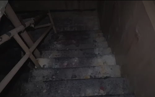 这是通往地下室的楼梯。 楼梯是铁质的,每踏上一步都会发出很大的声响,在安静的楼梯间回荡。 越往下走越是黑暗了,手电的光线只能照射到很有限的区域。